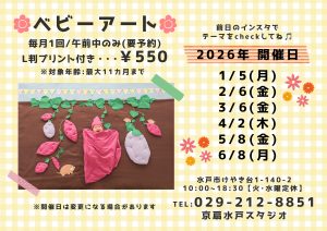 ベビーアート撮影会の2026年1月~6月までの日程が出来上がりましたのでご案内いたします♪