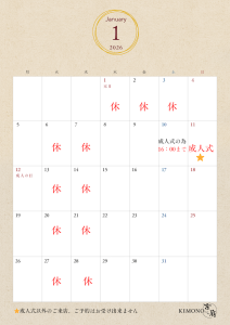 ※1/11(日)成人式の日は成人式以外のご来店・ご予約はお受け出来ませんので予めご了承下さい