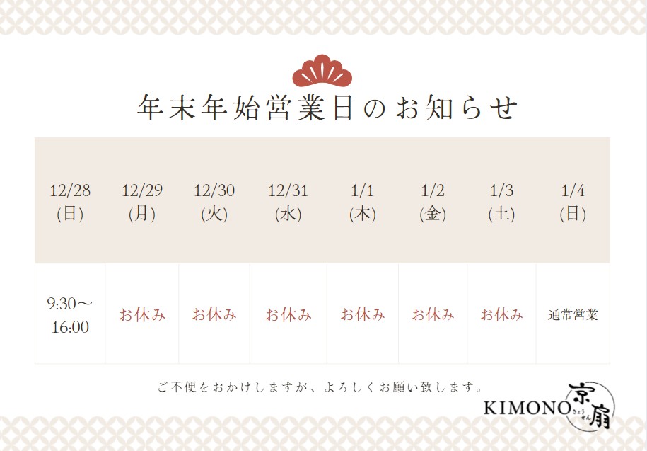 1月12日(日)は成人式の為、15:00閉店となります。